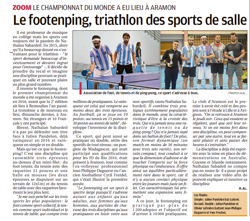 2ème Championnat du monde de Footenping à Aramon (page 19) – Novembre 2018